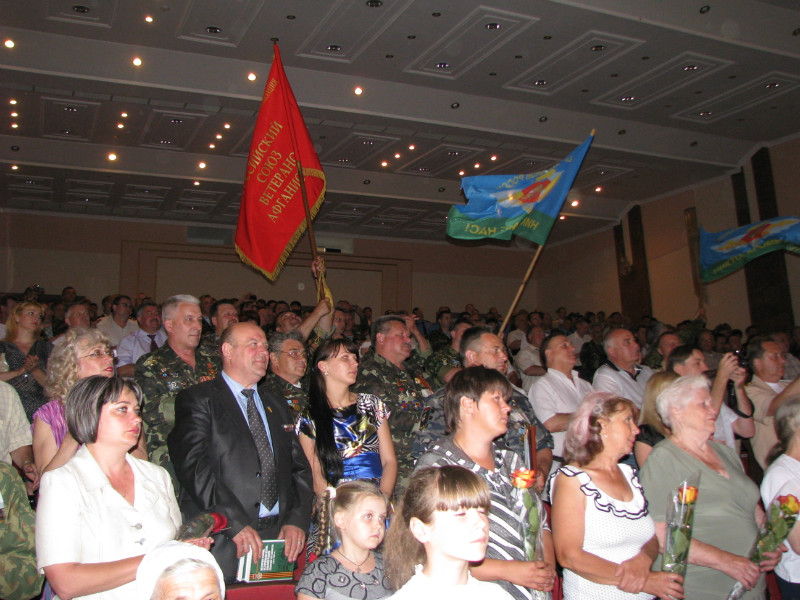 В концертном зале филармонии состоялось торжественное собрание, на котором отмечена значительная роль Луганской областной организации УСВА, под руководством председателя Ивана Павловича Шердеца, в общественной жизни региона и страны в целом. Свыше восьми тысяч воинов-интернационалистов Луганщины состоят на учете в организации.