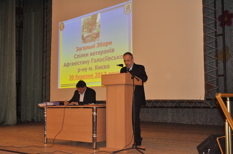 Голова районної спілки Віктор Балабін розповів про роботу за звітний період. Зокрема, члени організації взяли активну участь в усіх військово-патріотичних заходах району і міста, Військового інституту і КНУ, організували низку шефських заходів у музеях «Захисники Вітчизни» шкіл № 85, 260, 36 і 186, сприяли в організації урочистого відкриття експозиції ескадрильї «Нормандія – Неман» у школі № 15.