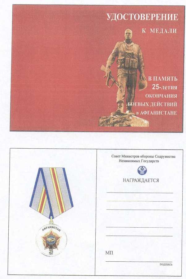 о медали «В память 25-летия окончания боевых действий в Афганистане» Совета Министров обороны