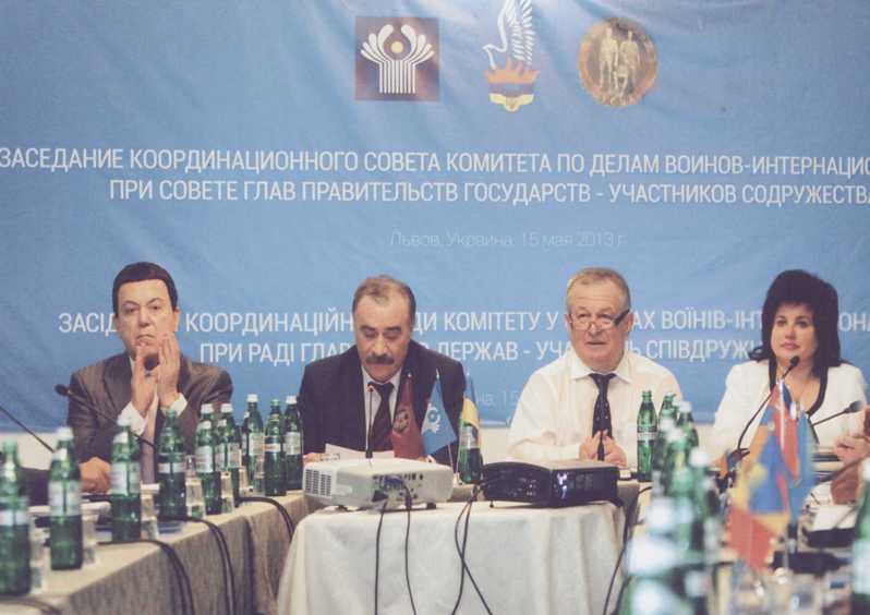 15 мая после возложения цветов к памятнику Т. Г.Шевченко и к Мемориалу погибшим в Афганистане состоялось заседание Координационного Совета Комитета по делам воинов-интернационалистов при Совете глав правительств государств – участников Содружества в соответствии с повесткой дня – (см.№ 7-8 газеты «ТТ») и регламентом. В соответствии с положением председательствовал на заседании Координацинного Совета председатель УСВА, Герой Украины С. В. Червонопиский. В ходе работы было принято Решение и Обращение к главам государств и главам правительств СНГ.