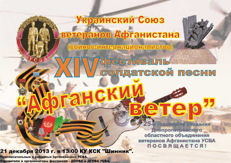21 декабря в 13.00 в Днепропетровском Дворце культуры «Шинник» состоится XIV фестиваль солдатской песни «Афганский ветер».